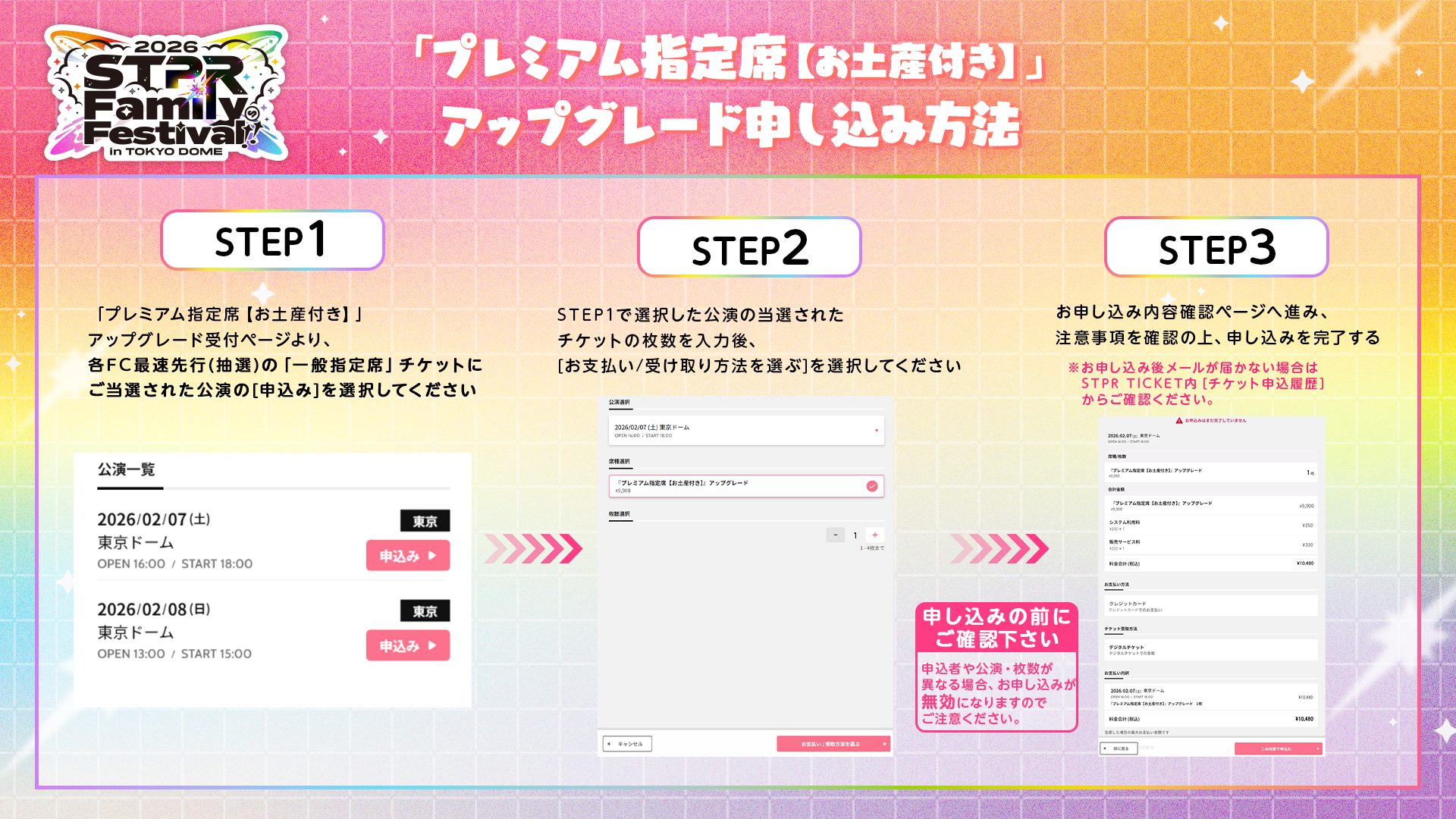 ※オフィシャル先行にてお申し込みいただく場合は、同行者の方もSTPR IDが必要となります