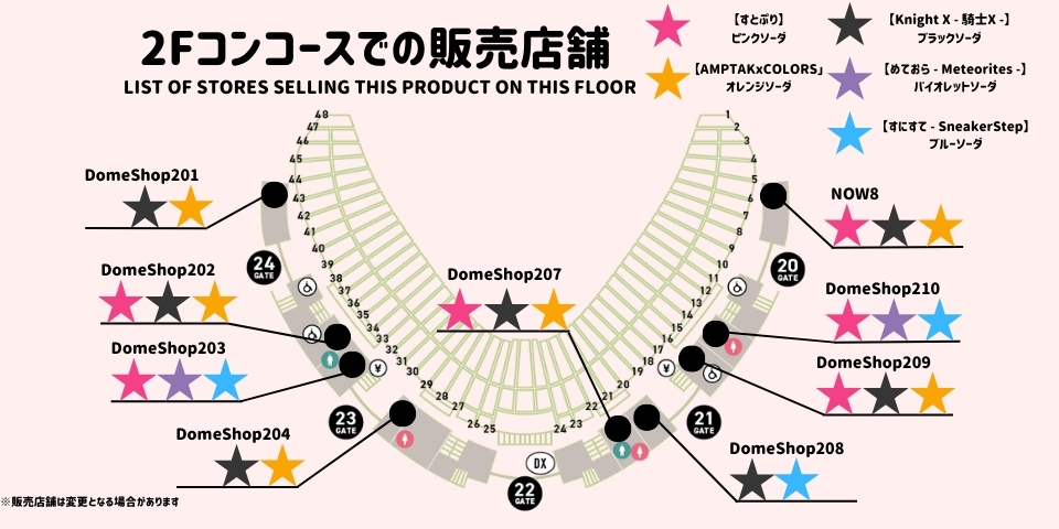 場内売店で「すとぷり」「騎士X – Knight X -」「AMPTAKxCOLORS」「めておら – Meteorites -」「すにすて – SneakerStep Prod.STPR MUSIC」をイメージしたコラボメニューを販売!
